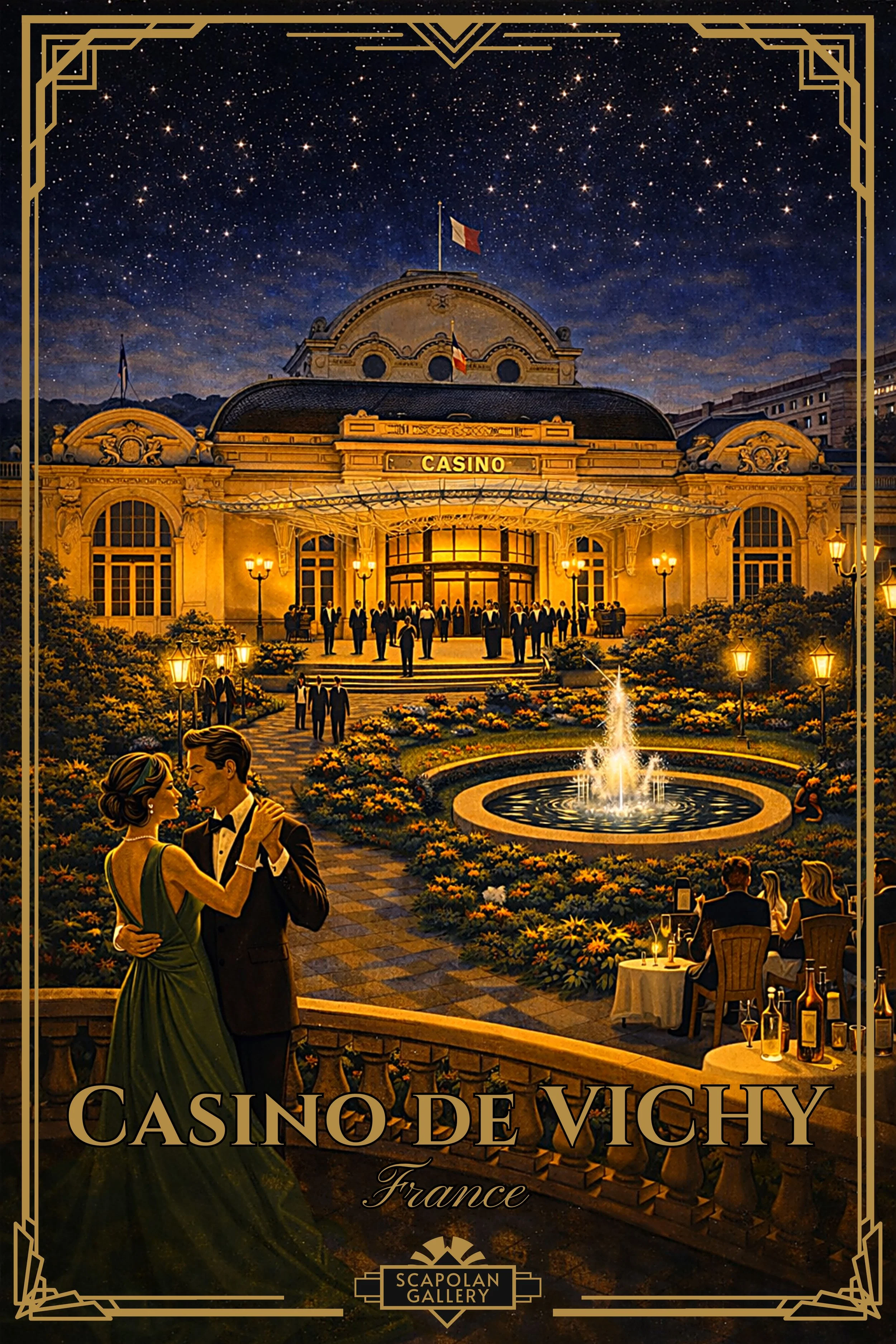 Une collection d’affiches inspirée de l’âge d’or de Vichy, entre architecture Belle Époque, thermalisme et art de vivre.